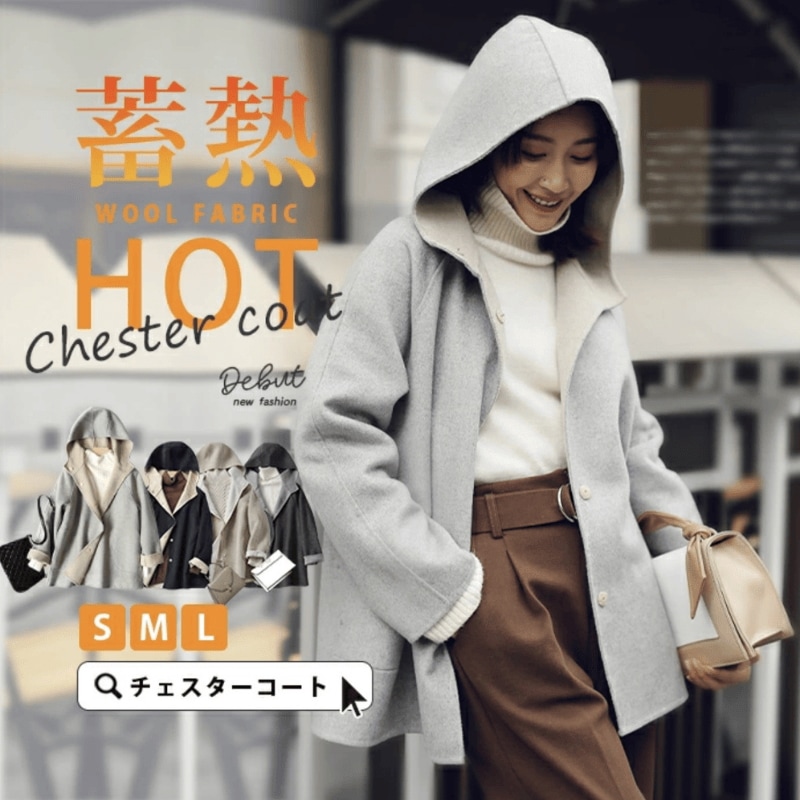 【2個で200OFF】チェスターコート ウール90% コート フード付き レディース ウールコート ダブルフェイス フードコート スナップボタン アウター コートジャケット 防風コート