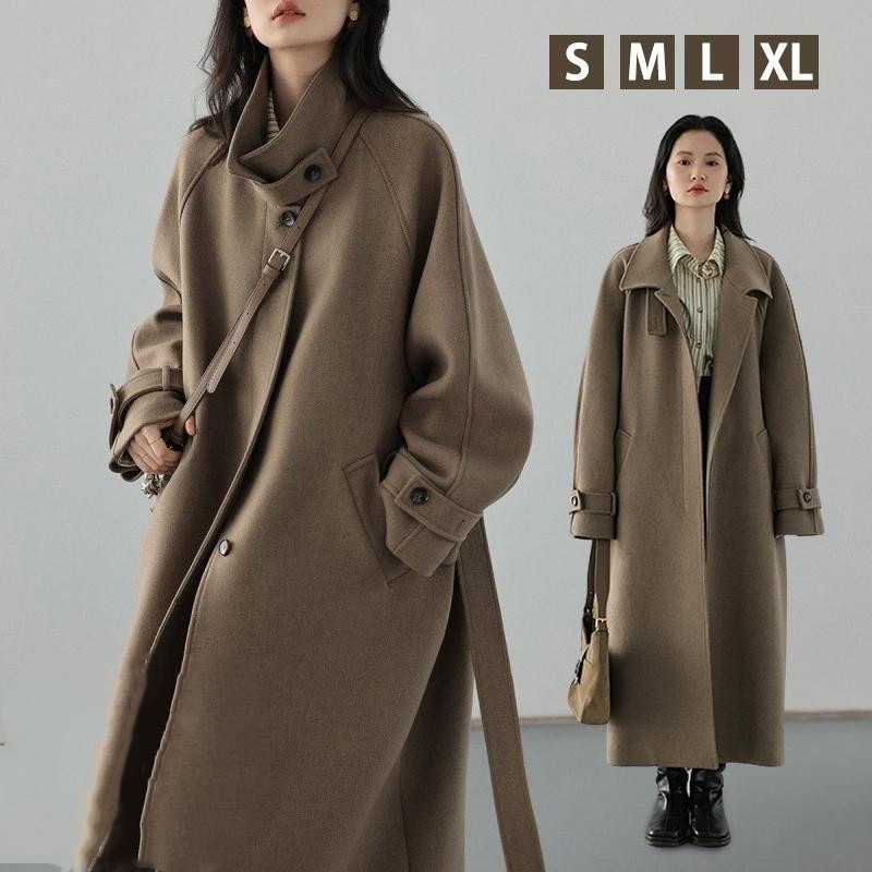 チェスターコート ロングコート レディース ファッション コート アウター 立ち襟 通勤 通学 韓国風 ラグランスリーブ ロング丈 オーバーコート シンプル